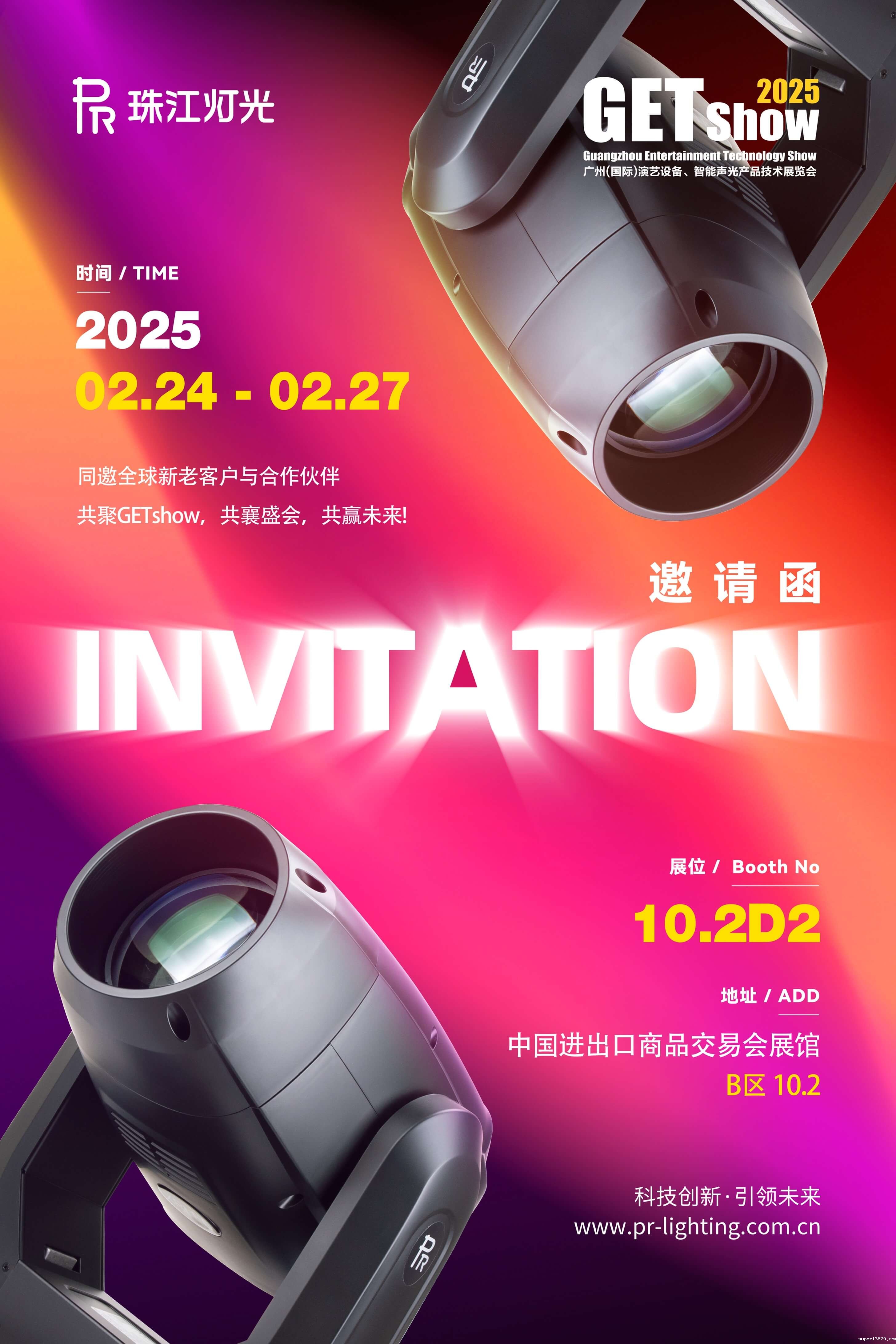 2月24日,由广东演艺设备行业商会主办2025年广州(国际)演艺设备、智能声光产品技术展览会(GETshow)在广州广交会展馆B区隆重举办!作为演艺设备领域的领军企业,珠江灯光作为参展商深度参与本次展会,与全球行业同仁共同见证这一年度盛事。