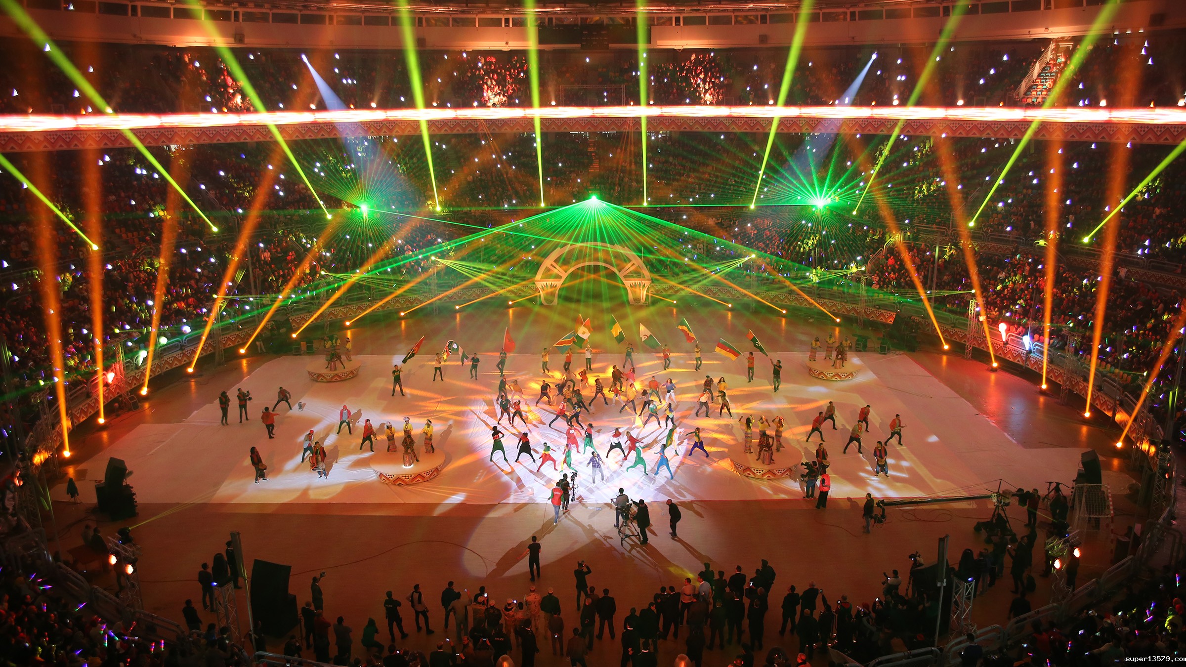 为了阐明“非洲,一只手”的主题,艾哈迈德﹒阿拉法本次使用了XR-330光束灯100台,XR-200光束灯60台,1061染色灯48台,3019染色灯48台,PR-5000造型灯24台,PR-5000图案灯16台,以及16台新型LED Studio 3200D影视灯,重点突出灯光的多样性和色彩的丰富性,通过紧凑的外形结构来产生高水平、先进的光学输出。