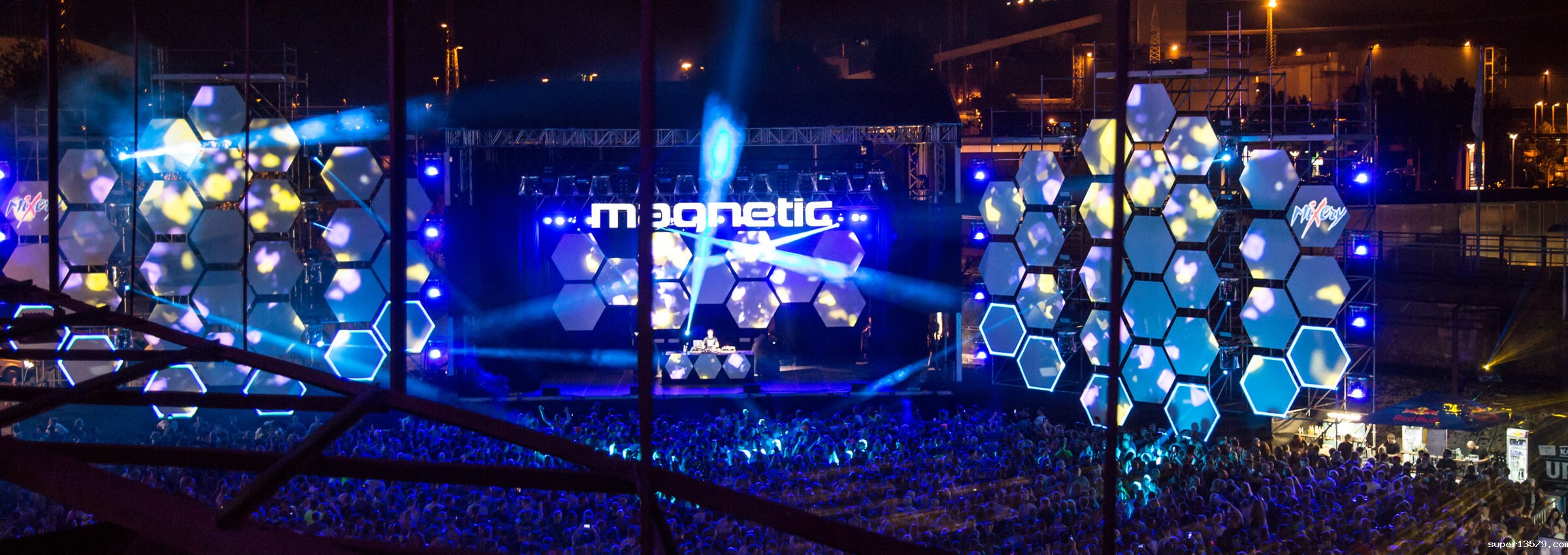 7月16日夜晚,成千上万的人群聚集在弗尔克林根钢铁厂,这个世界文化遗产地在大量灯光的照耀下呈现出五彩缤纷的景象。由AlleFarben, Chopstick &Johnjon, Moguai, Richie Hawtin 等众多明星加盟的Electro-Magnetic EDM音乐节,打造了一场顶级盛宴。